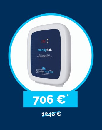 Un système pour piscines jusqu’à 50 m³ qui transforme le sel en chlore et désinfecte l’eau naturellement, sans produits chimiques. Existe aussi en 75m3.