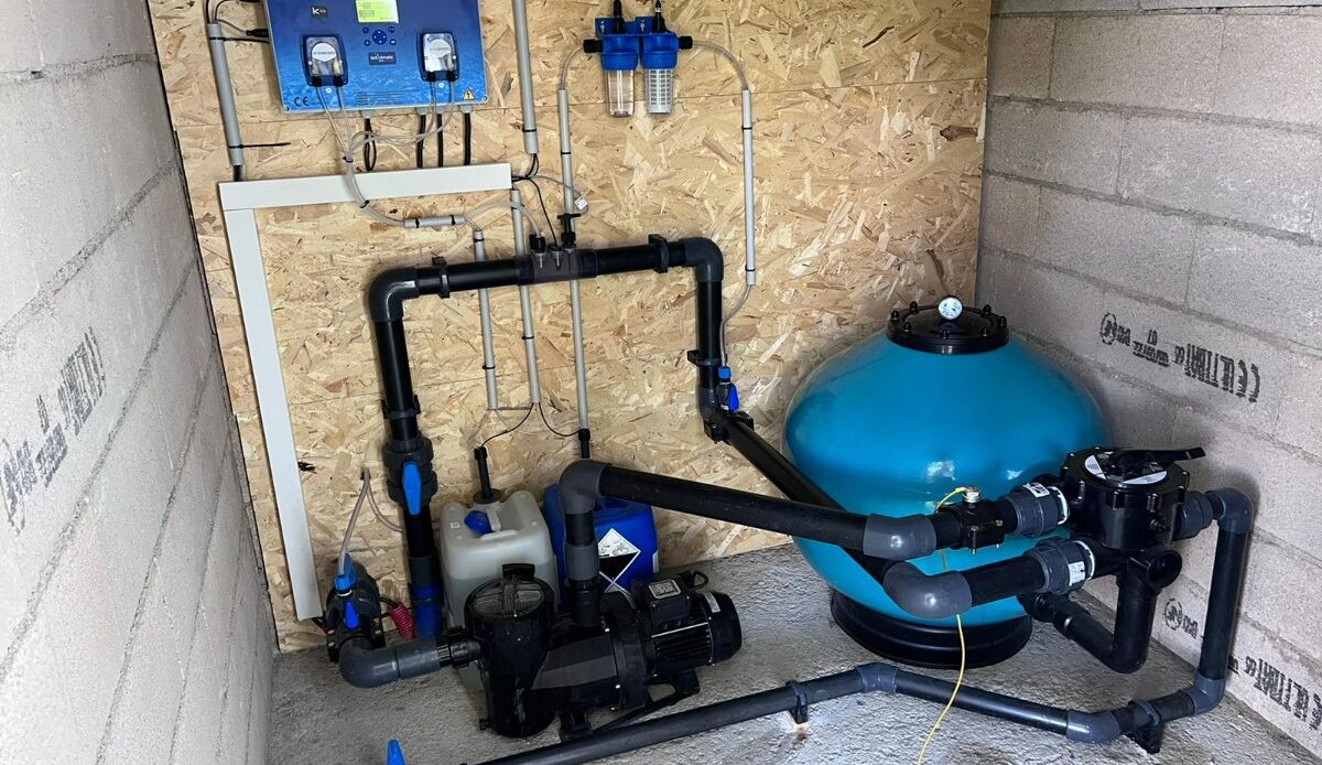 Installation d'une filtration piscine avec un traitement sel connecté Kléréo à Colombiers (34)